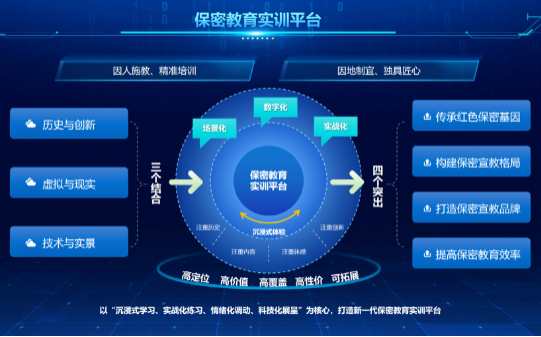 中孚打破保密教育实训平台传统建设模式,在行业内创新性地提出了保密教育实训平台3.0建设方案。方案以“三个结合”与“四个突出”为原则,以“沉浸式学习、实战化练习、情绪化调动、科技化展呈”为核心,通过场景化模拟、数字化交互、个性化培训等创新手段,真正实现“因人施教、精准赋能”,实训平台建设效果已获得用户的高度认可与广泛好评。