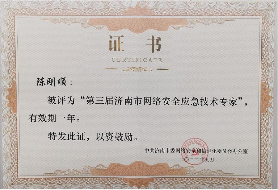 活动现场,中孚信息被评为“第三届济南市网络安全技术支撑单位”。同时,公司同事凭借较强技术实力和较强社会责任感获评“第三届济南市网络安全应急技术专家”荣誉称号。